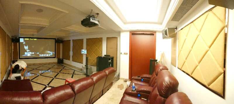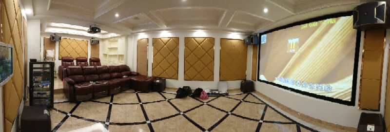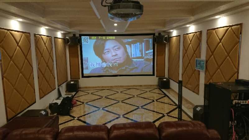 要獲得一個(gè)良好的視聽(tīng)體驗空間需要電聲設備和聲學(xué)裝修兩方面的匹配,一個(gè)裝修舒適的空間不僅令身心愉悅還可以讓聲畫(huà)更好的還原,本案也不例外。立面墻體均做了聲學(xué)吸音處理,已達到一個(gè)合適的混響時(shí)間。