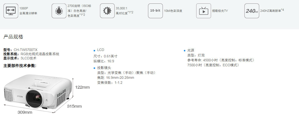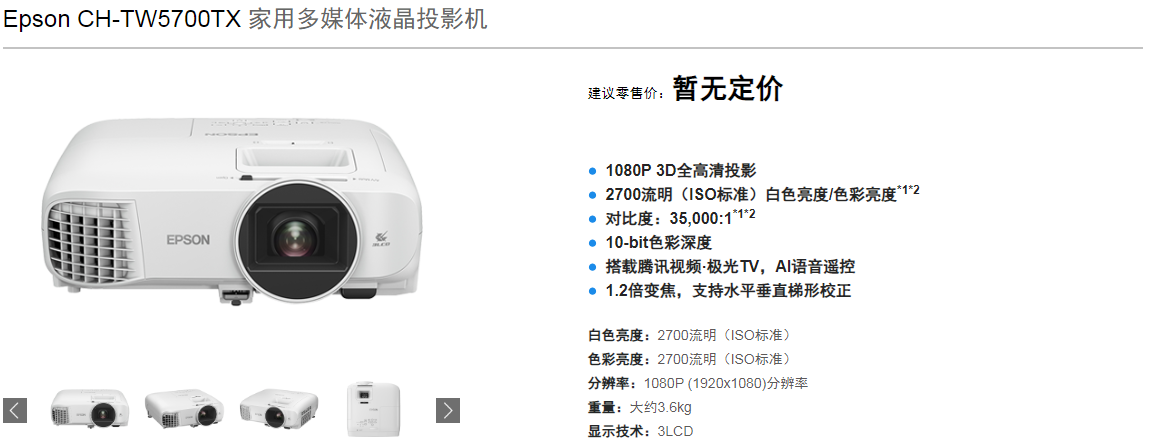 關(guān)鍵詞: Epson CH-TW5700TX 家用多媒體液晶投影機 1080P 3D全高清投影
